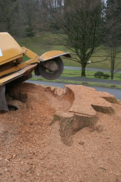 Mit unseren drei leistungsstarken Maschinen können wir fast überall Baumwurzeln in jeder Größe schnell und präzise ausfräsen.